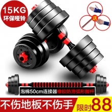 泊尚 哑铃男女士家用15 20 30 40公斤一对健身器材练初学者可拆卸杠铃套装亚玲环保 15公斤一副(左右手各7.5kg)送50公分连接杆