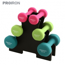 PROIRON 哑铃女健身减肥瘦臂浸塑磨砂家用小哑铃郑多燕跳操男士女士训练亚玲体育用品 1/2/3Kg套装送架子
