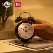 得力(deli)迷你复古机械闹钟 低噪音自带夜光 撞针响铃 家庭卧室床头闹钟 学生启蒙闹钟 黑色9024