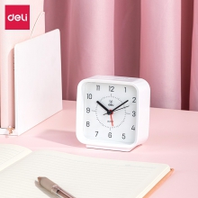 得力(deli)简约指针式闹钟 一键贪睡 柔光夜灯 卧室床头方形台式时尚座钟 白色8851