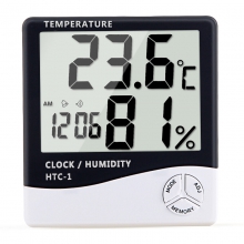 雨花泽(Yuhuaze)电子温湿度计带时间闹钟 办公家用室内外温度计 测温计 湿度计