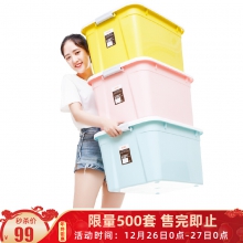百草园 塑料整理箱收纳箱 衣服杂物储物箱 大号60L 2个装 糖果绿