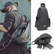 teemzone廷尊男士胸包休闲运动单肩包男潮流复古斜挎包旅行小背包 8020升级黑