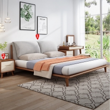 俪莎公馆 床 北欧床实木双人床1.8米简约卧室可拆洗布艺床精品家具 床+床头柜*1 1800*2000