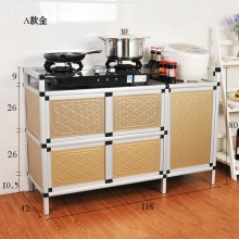 陆航优品 餐边柜茶水柜铝合金储物柜简易橱柜厨房柜子客厅柜收纳柜不锈钢组装多功能灶台柜燃气灶小橱柜碗柜 米柜金120*42*80 右门
