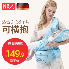 纽贝乐婴儿背带腰凳夏季透气宝宝新生儿背带横抱式儿童多功能腰凳小孩抱娃神器 清新蓝-升级轻便款 均码