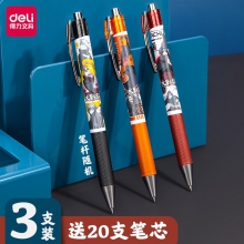 得力(deli)火影忍者系列臻顺滑按动中性笔签字笔 0.5mm子弹头 舒适软胶款 A594 3支装