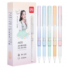 得力A635学生黑色中性笔0.5mm全针管(12支装)