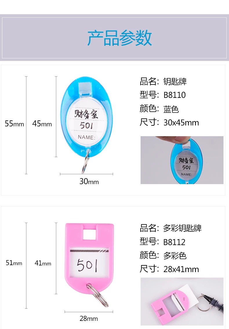 金隆兴(Glosen)钥匙牌钥匙扣宾馆房号锁匙数字号码标识牌塑料标签分类牌子 B8112(36个/盒) |