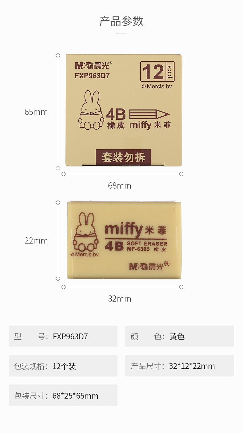 晨光(M&G)文具4B黄色橡皮 学生美术考试专用橡皮擦 12块/盒FXP963D7