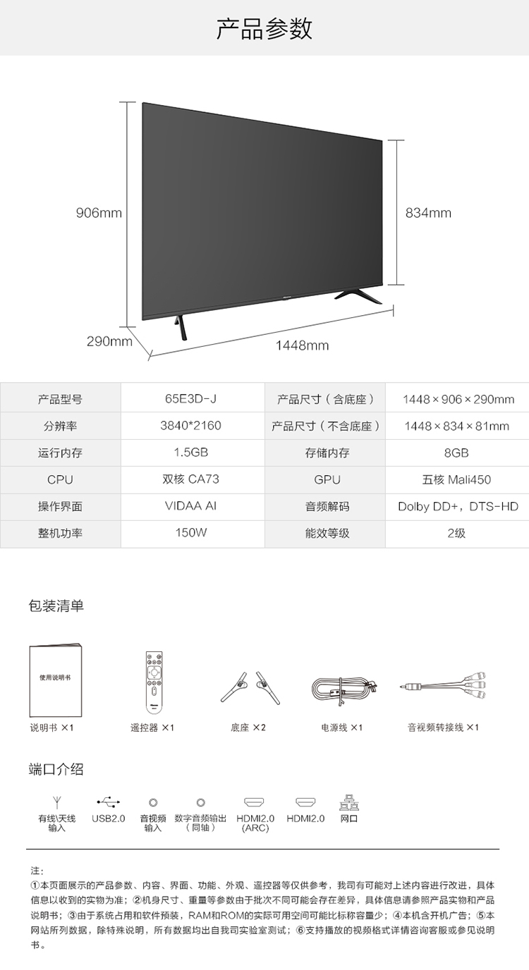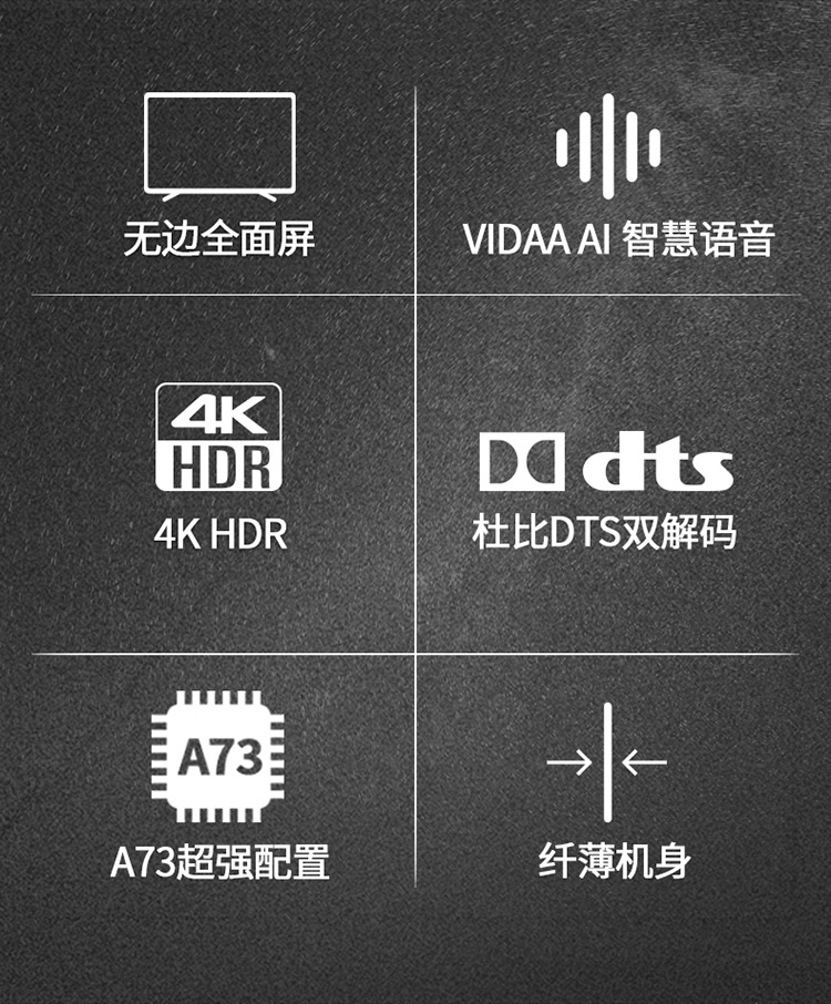 4K超清电视;全面屏电视;人工智能电视;大屏电视能效等级: