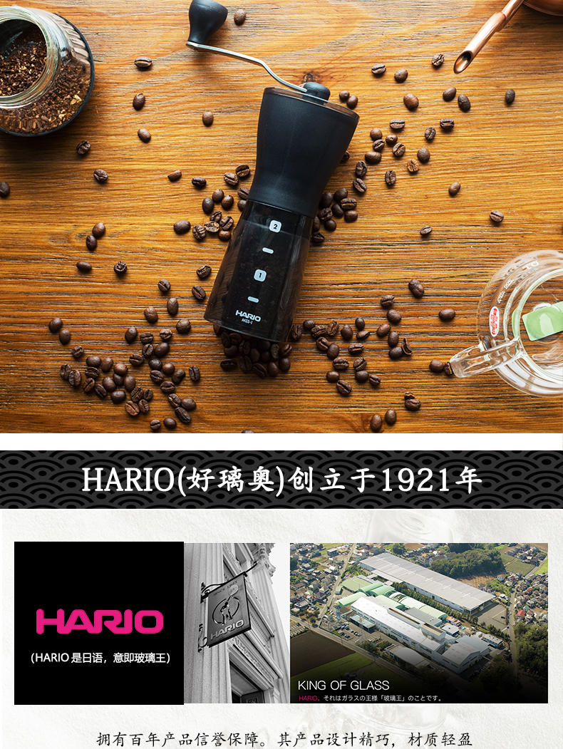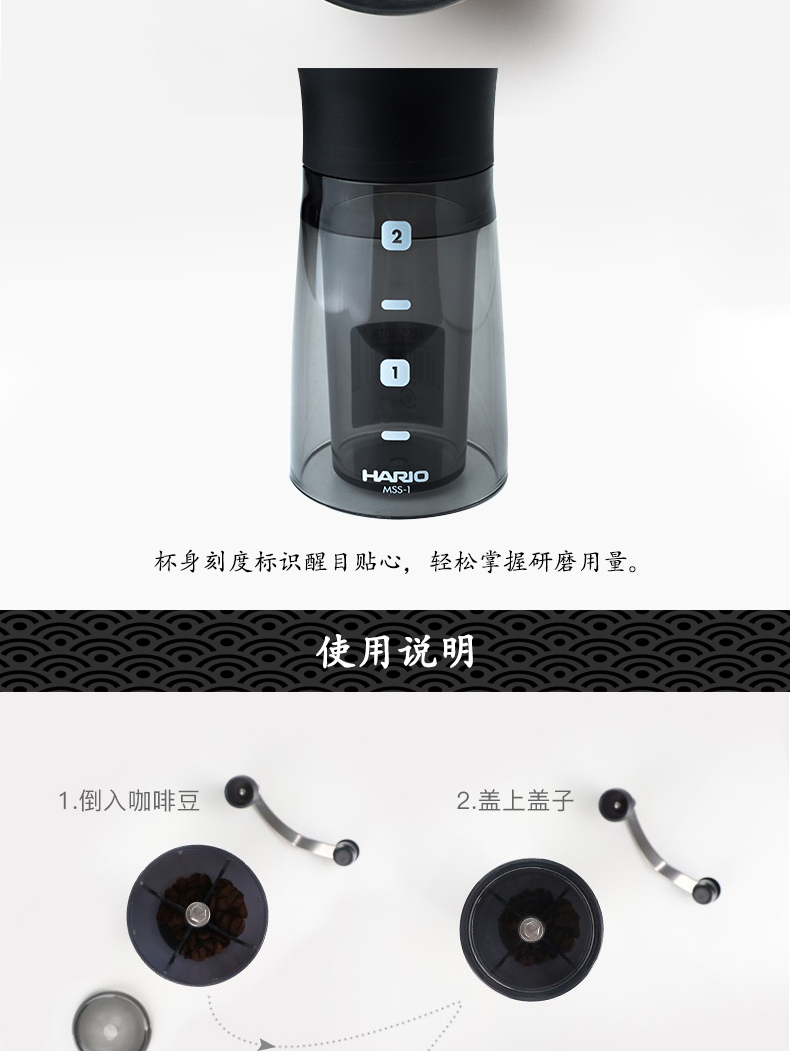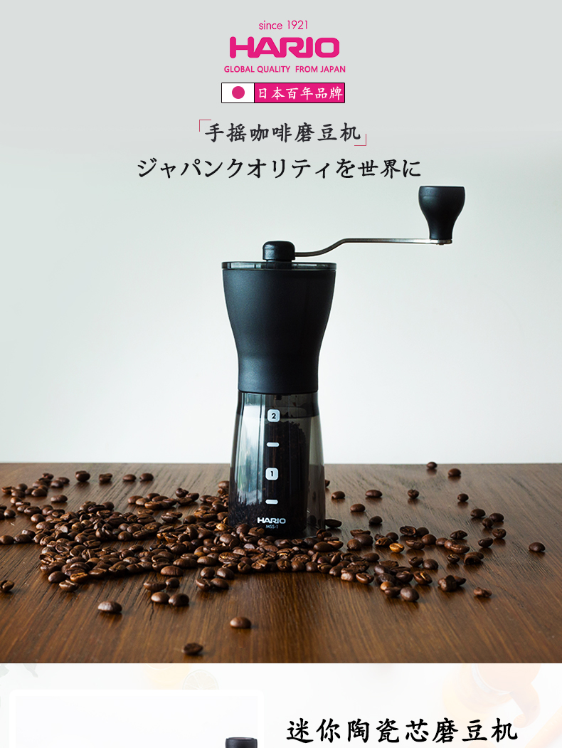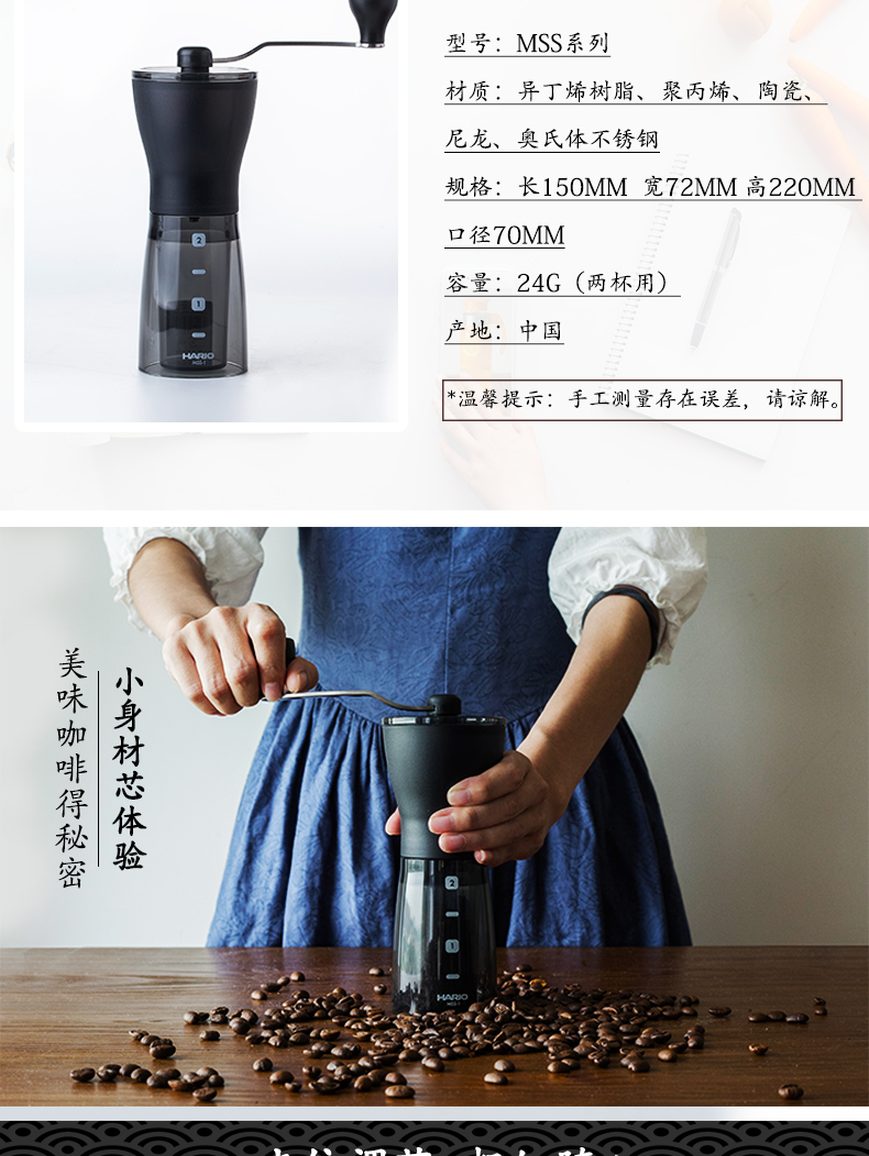 日本HARIO磨豆机咖啡豆研磨机手摇磨粉机迷你便携家用手动粉碎咖啡机MSS