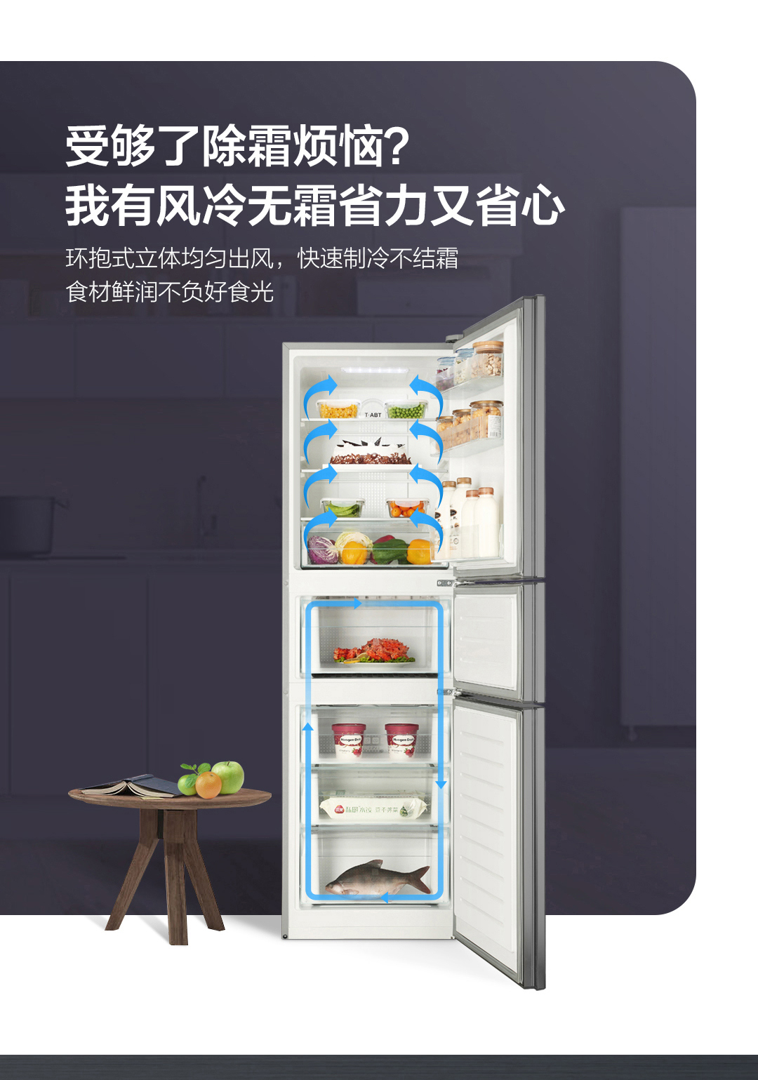 风冷无霜、中门全温区、巡航立体风、T-ABT巡航杀菌制冷类型:
