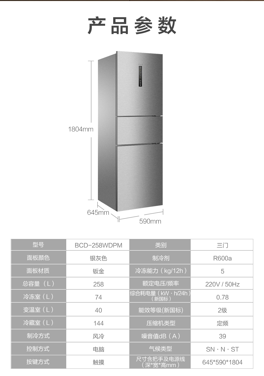 645*590*1804包装尺寸(深x宽x高)mm: