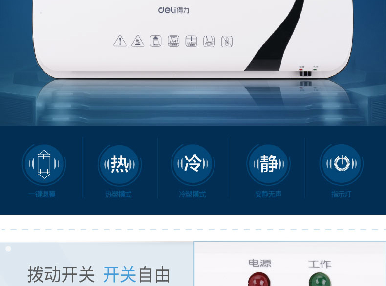 得力(deli)2130 A4塑封小秘书 塑封机封装机 自动过塑机过胶机 简洁时尚 静音型