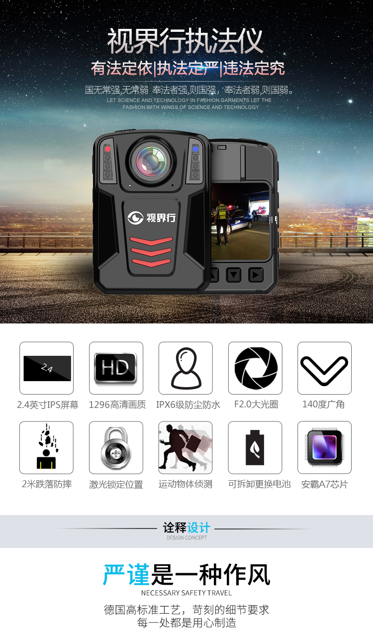 视界行F8执法记录仪高清现场记录仪防爆红外夜视1080P便携式防水记录仪安霸A7芯片32G内存