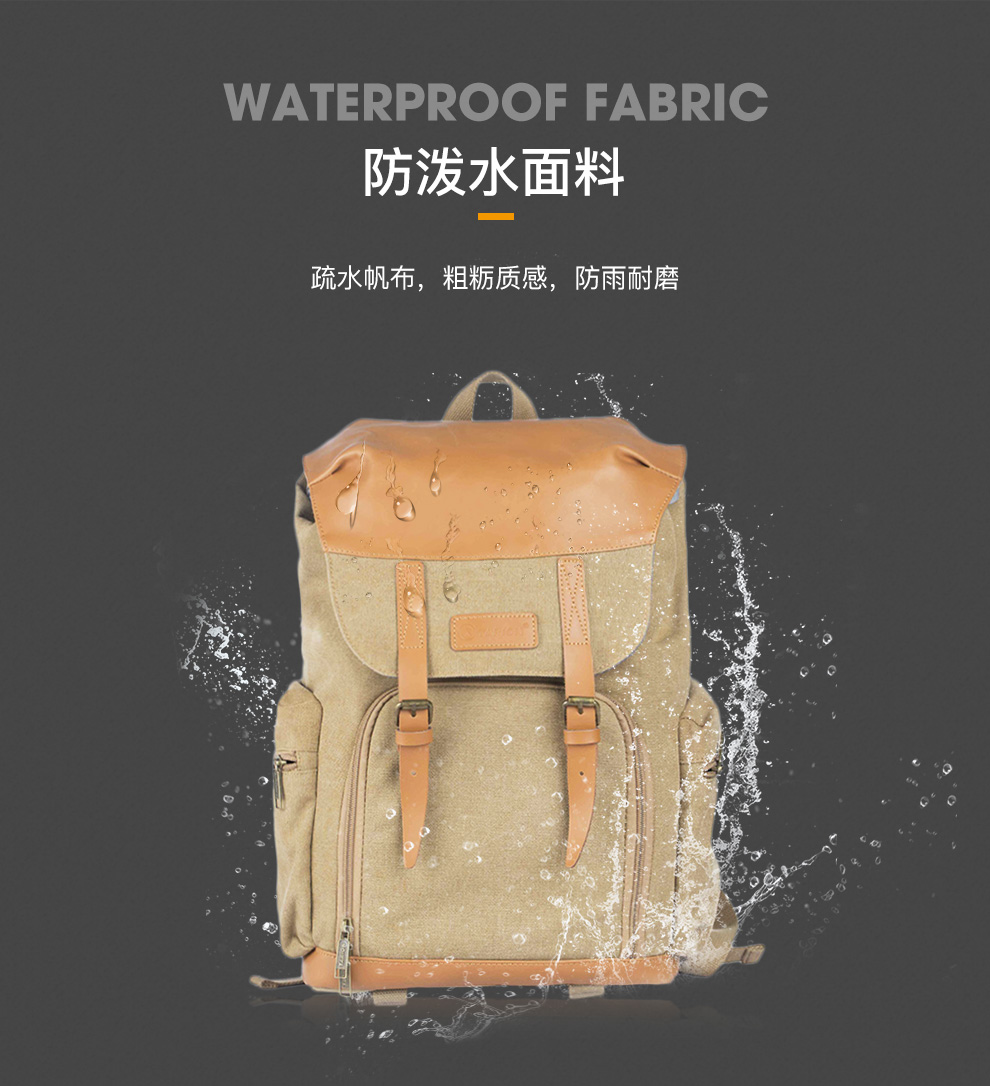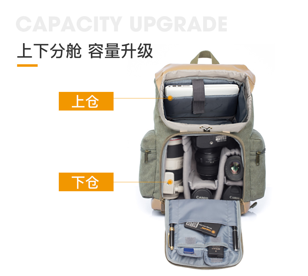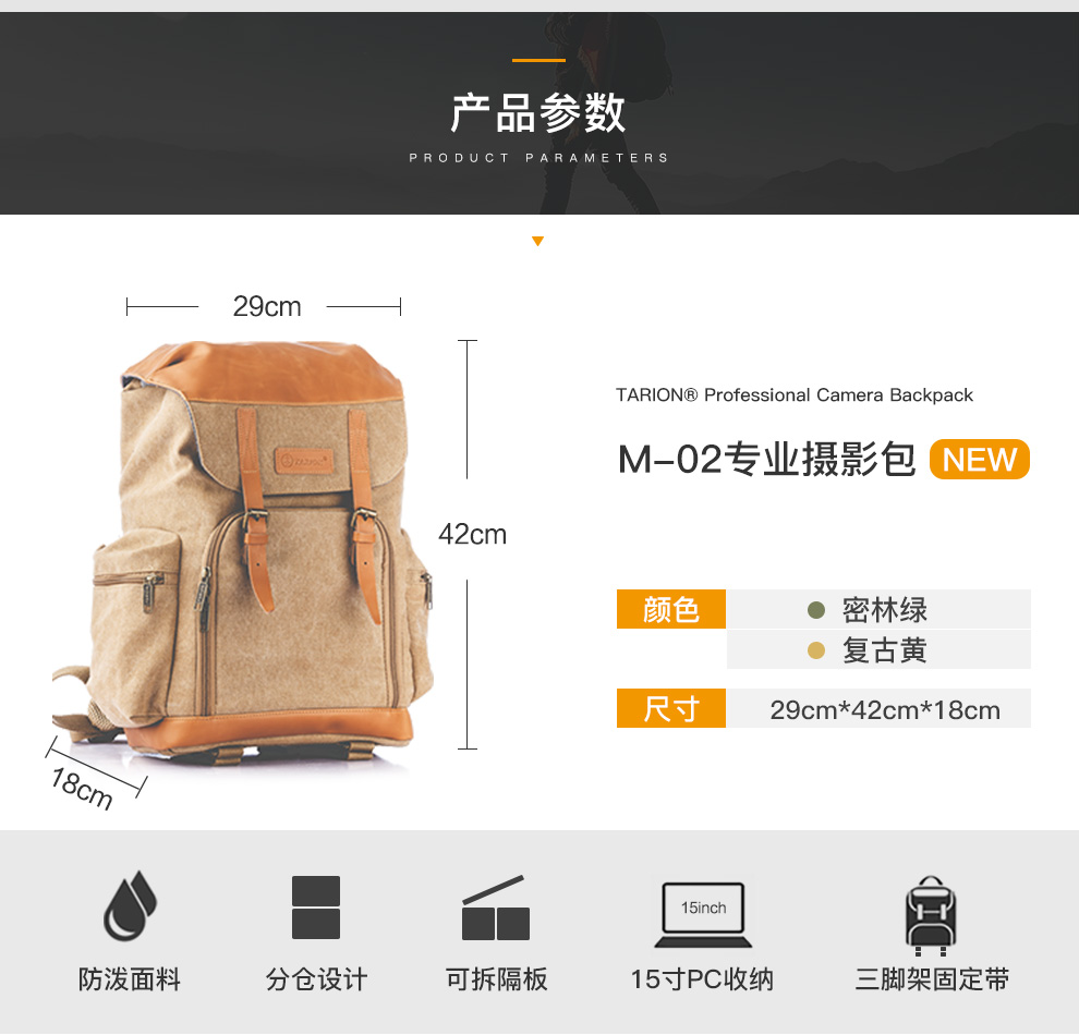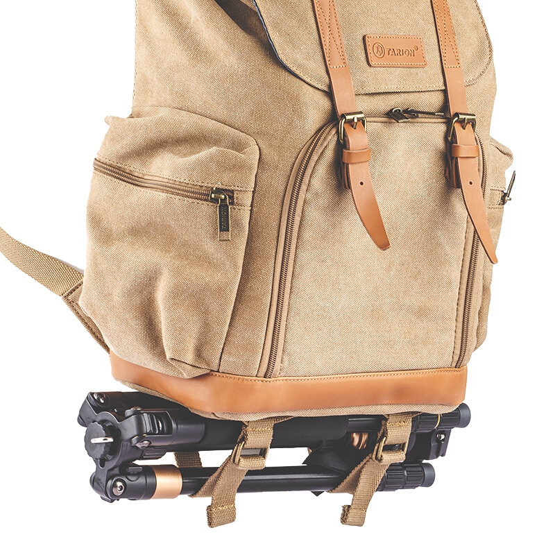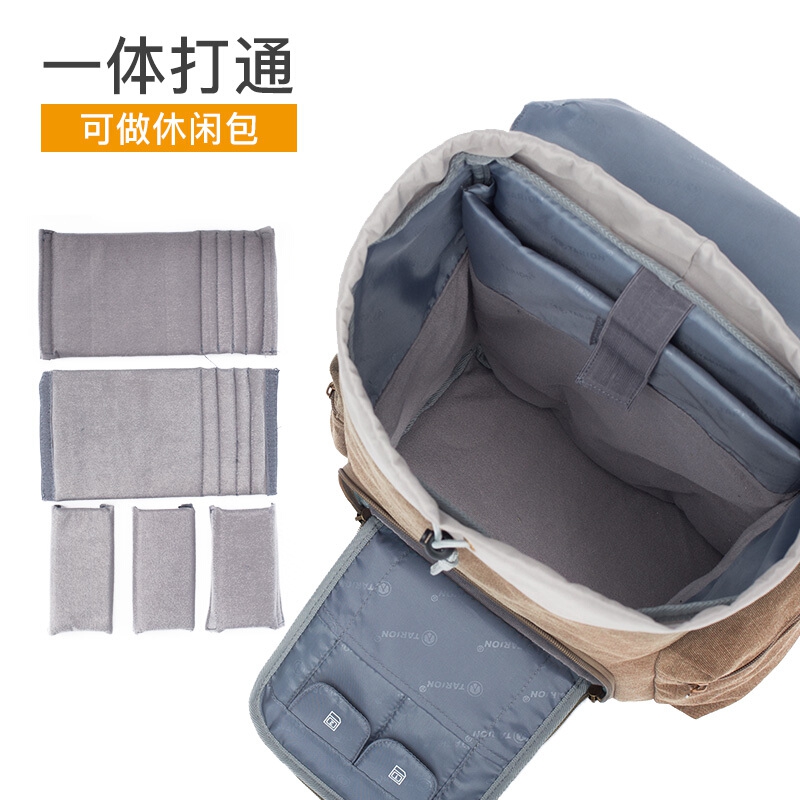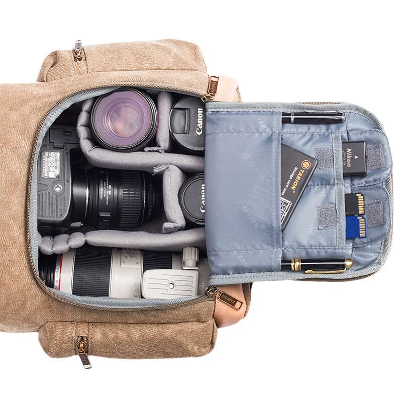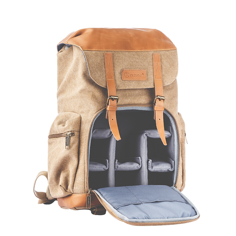 TARION德国相机包单反双肩背包便携牛皮帆布摄影包佳能尼康内胆包 复古黄