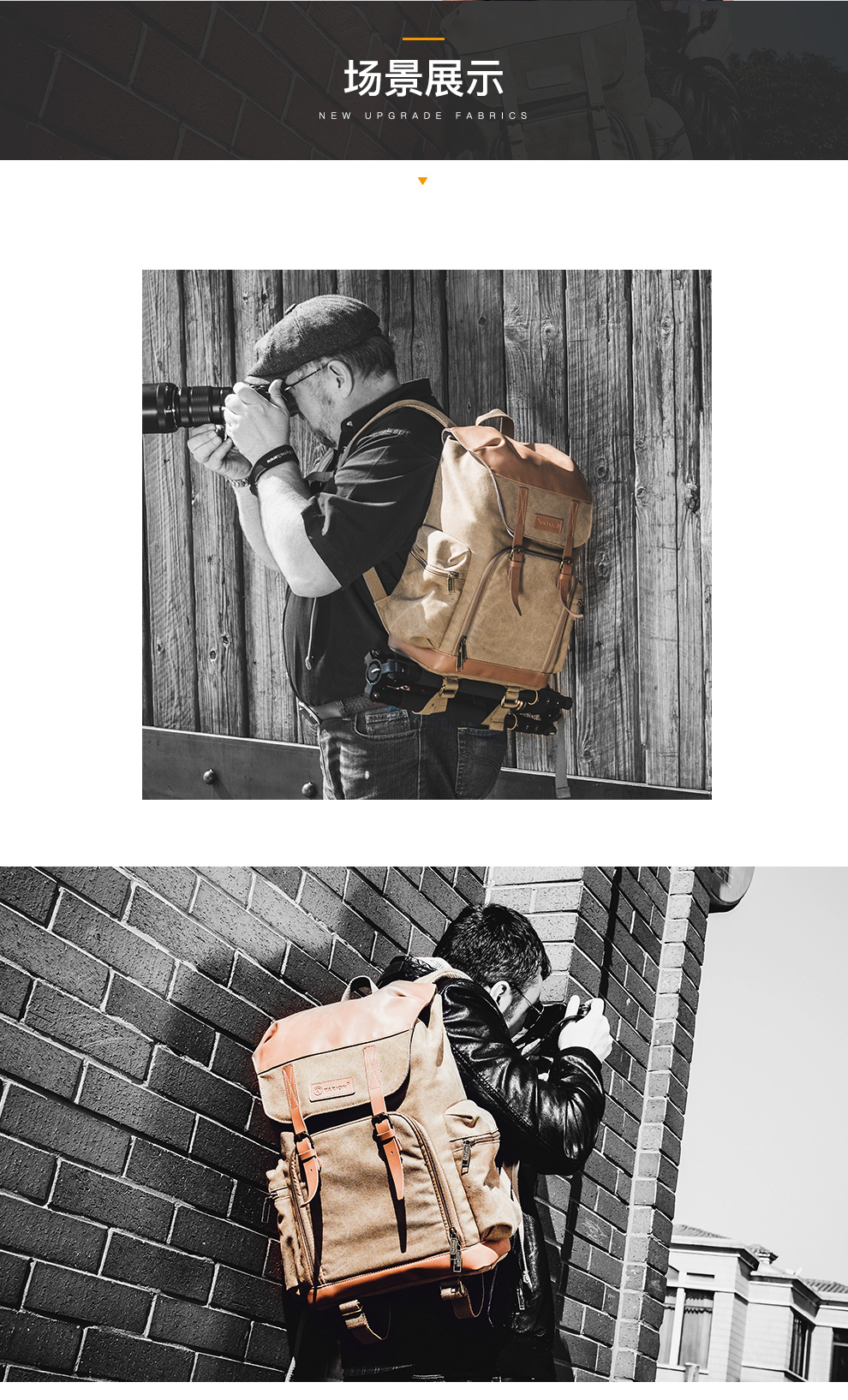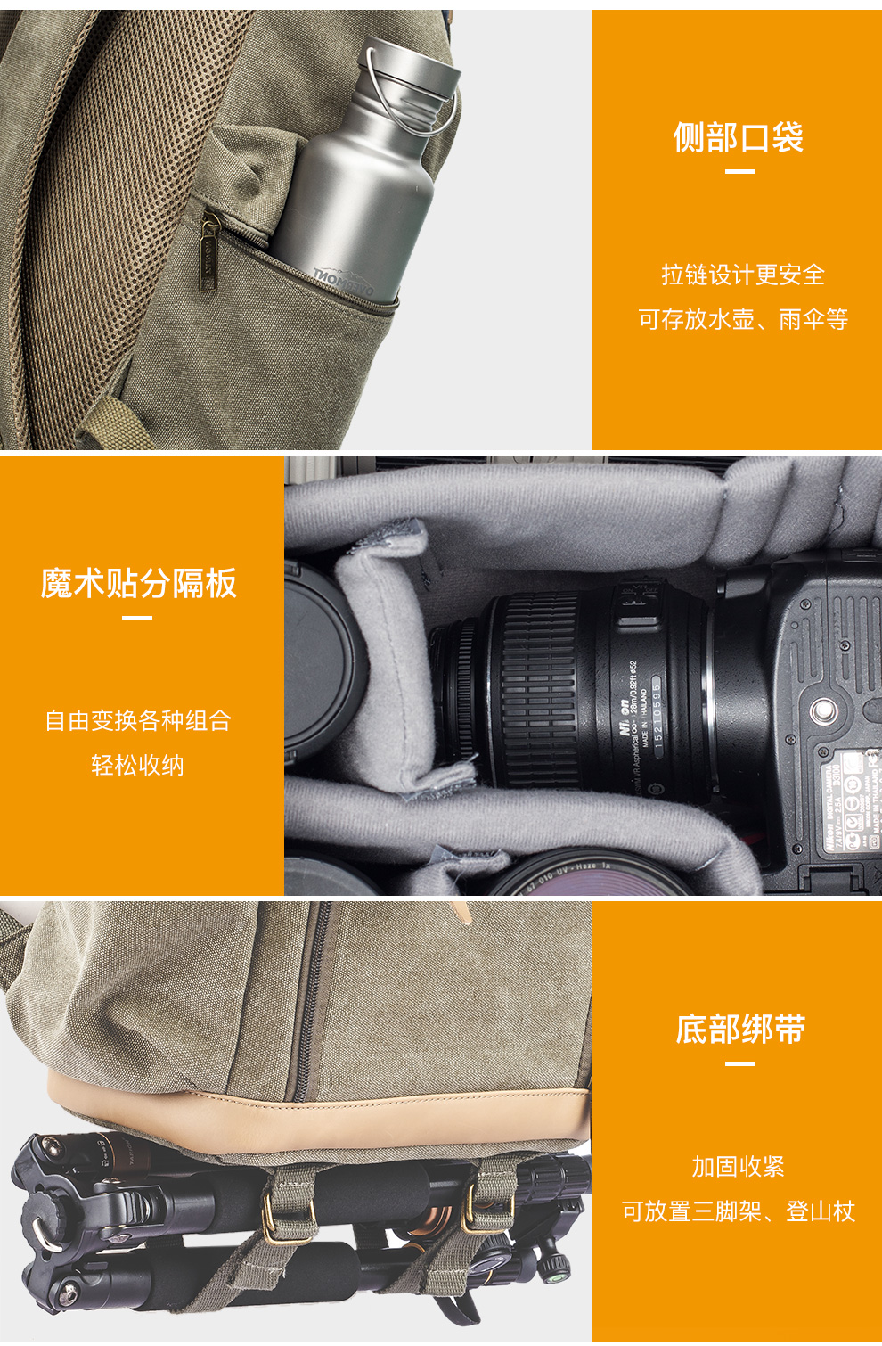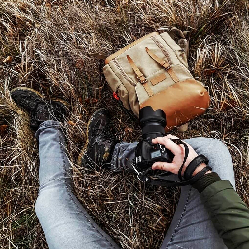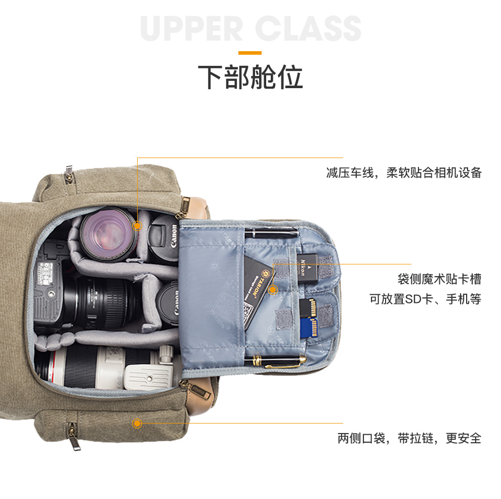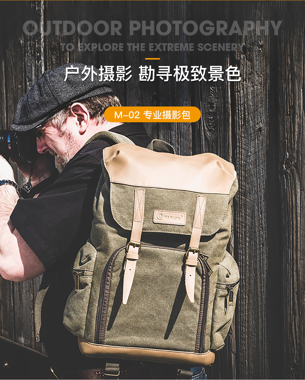 TARION德国相机包单反双肩背包便携牛皮帆布摄影包佳能尼康内胆包 复古黄