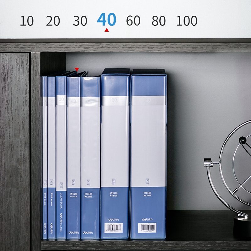 得力(deli)A4/40页资料册文件活页收纳册插袋档案文件夹学生试卷科目收纳袋文件保护5104