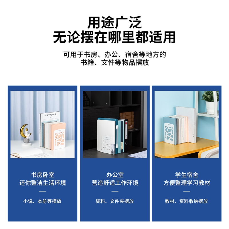 得力(deli)6.5英寸(高16cm)创意镂空铁书立架 金属书靠2片/付 白色