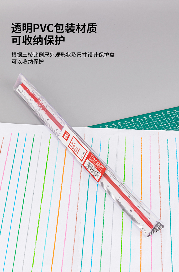 得力(deli)30cm多色标识三棱比例尺子 6种比例