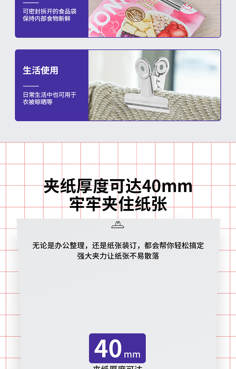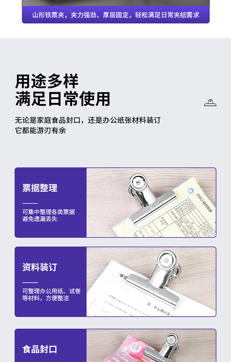 得力(deli)6只76mm圆形铁票夹资料整理夹票据夹