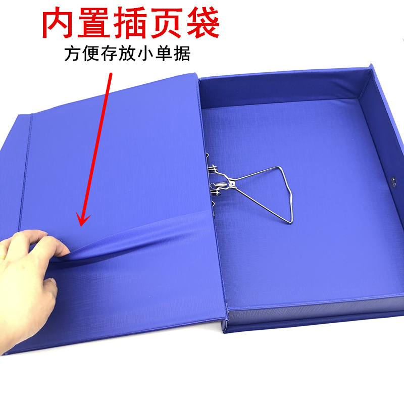 凤江档案盒加厚带铁夹a4磁扣PVC无夹档案盒A4资料收纳盒3寸档案夹 201B(深蓝色)有顶夹