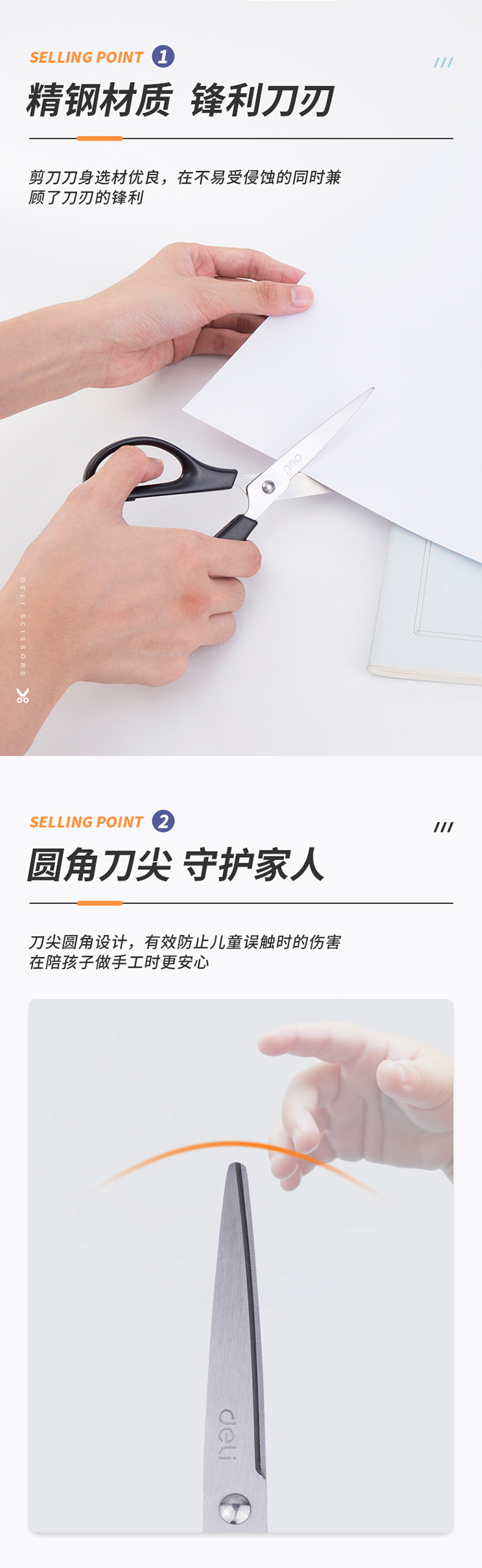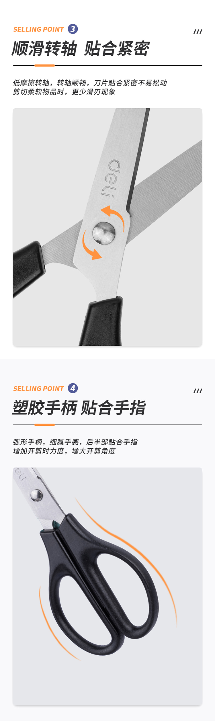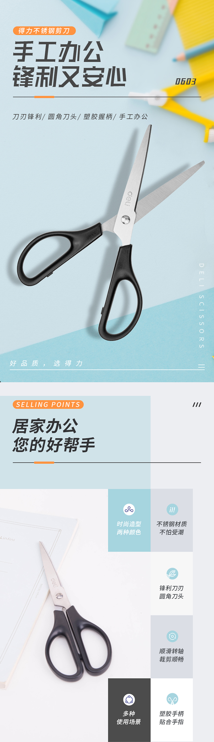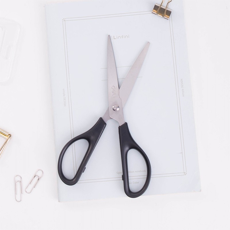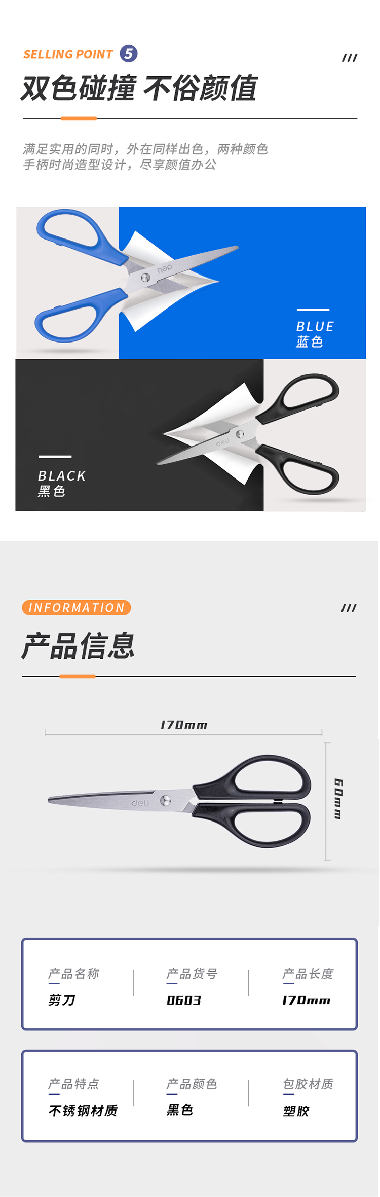 得力(deli)0603 办公家用生活剪刀 大中小号不锈钢手工剪纸刀多功能锋利剪子办公用品 170mm 黑色 5把装