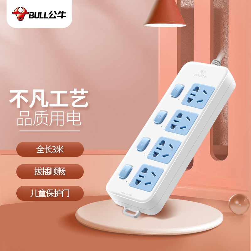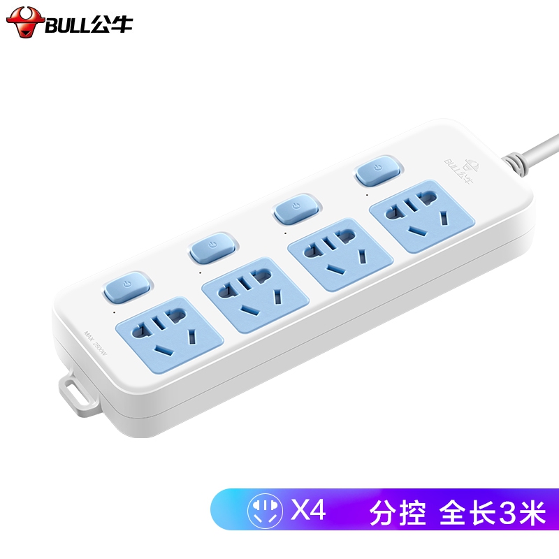 公牛(BULL)新国标插座/插线板/插排/排插/接线板/拖线板 4位分控全长3米 GN-315