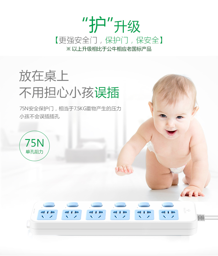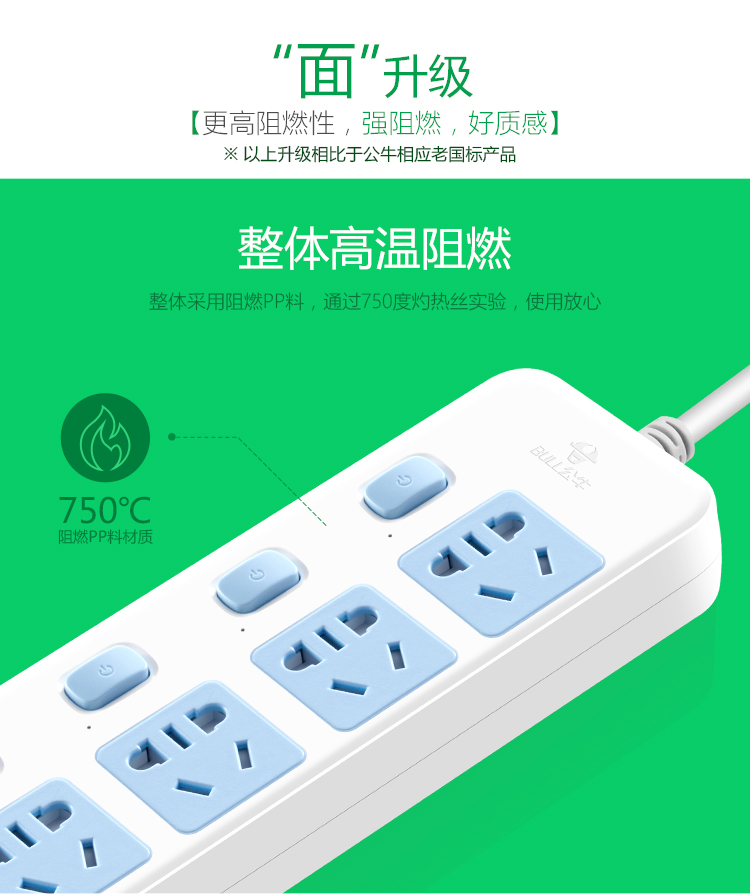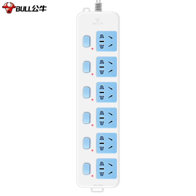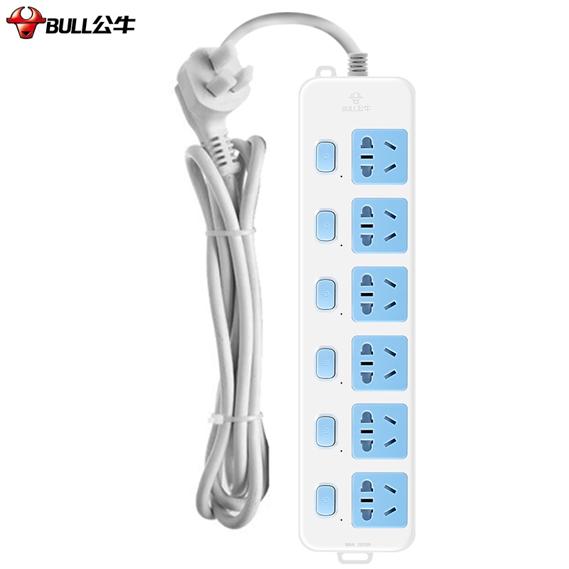 公牛(BULL)新国标插座/插线板/插排/排插/接线板/拖线板 6位分控全长3米 GN-317