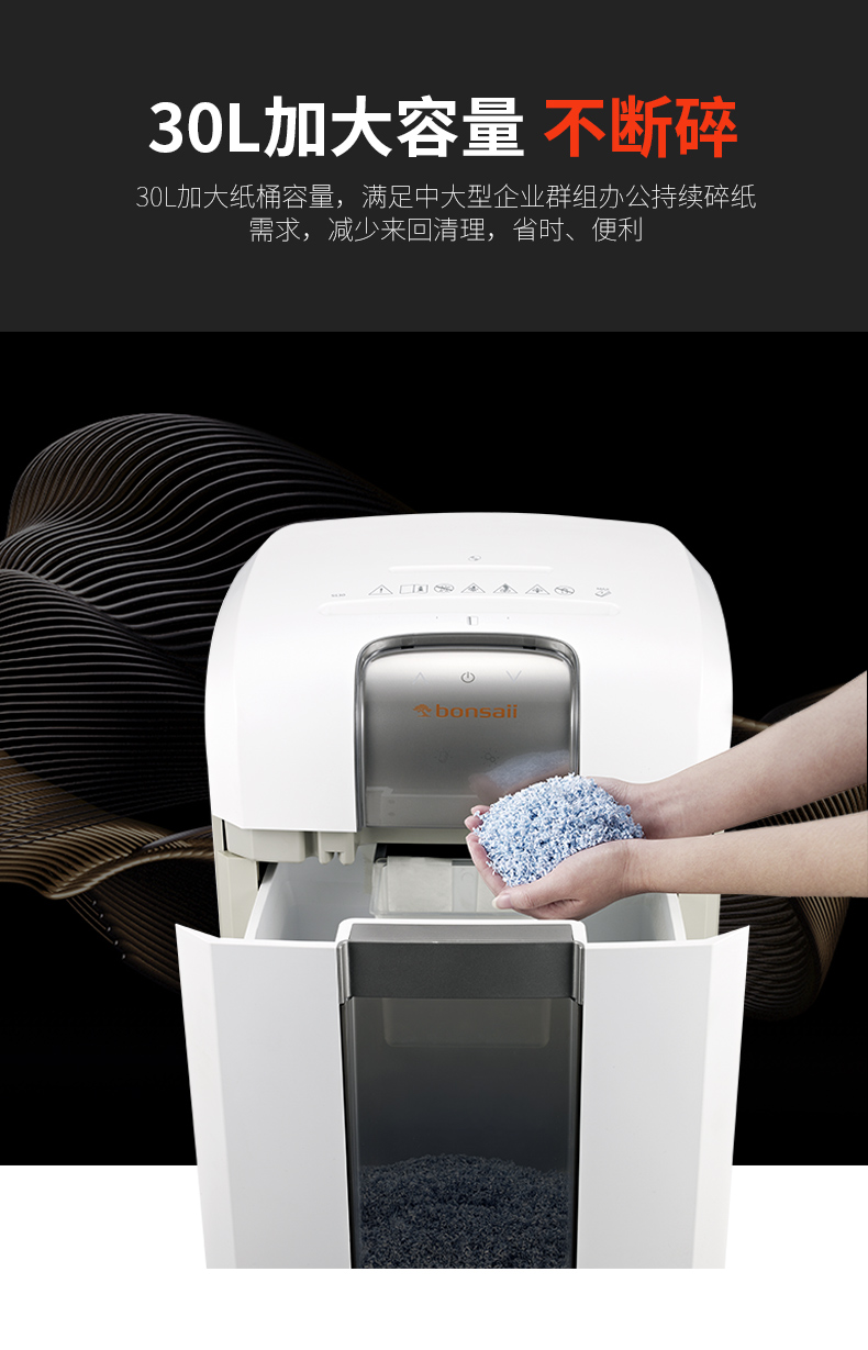 盆景(bonsaii)5S30高保密双口碎纸机30L 5张连续4小时碎纸机 1*6mm(纸/信用卡/光盘)6级保密