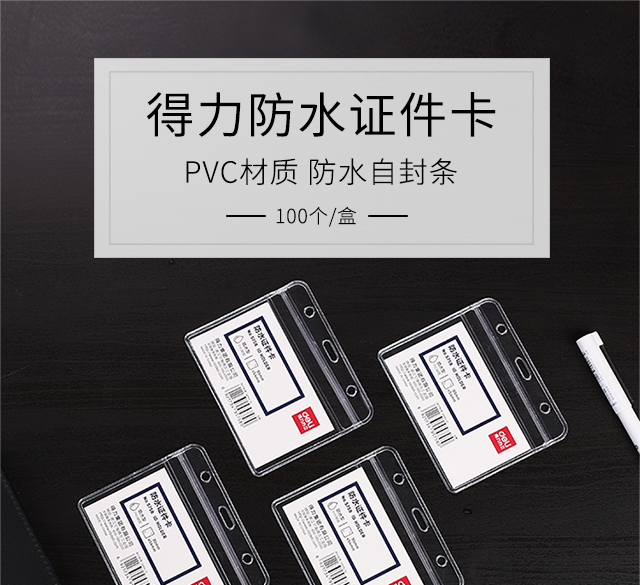得力(deli)100个横式防水工作牌证件卡套 透明工作证员工牌公交卡套饭卡门禁地铁卡套 5758
