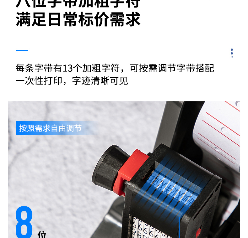 得力(deli) 8位单排标价机 商超打印价格标签打码机日期打价器7503蓝 2L00042