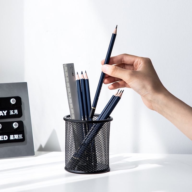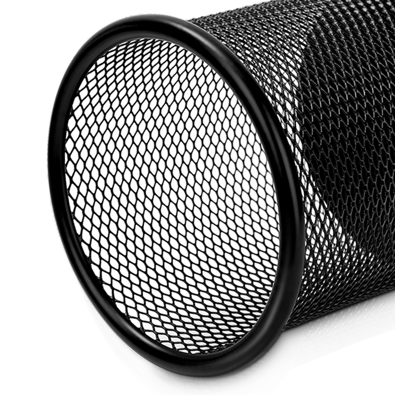 得力(deli)金属网纹圆形笔筒 简约创意桌面收纳盒 办公用品 黑色9172