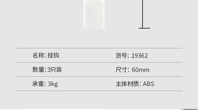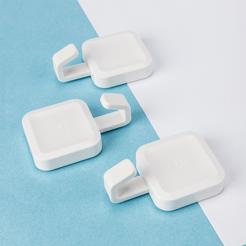 得力(deli)居家生活挂钩 3kg强力大承重免打孔 厨房浴室挂钩帖 自带无痕背胶3只/卡 简约北欧方形 白色19362