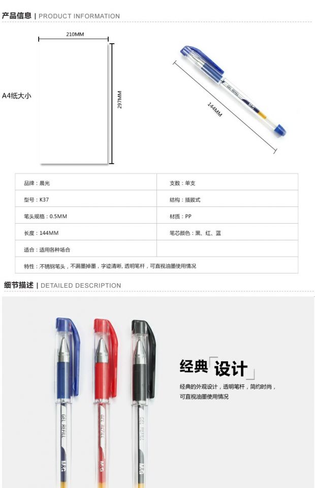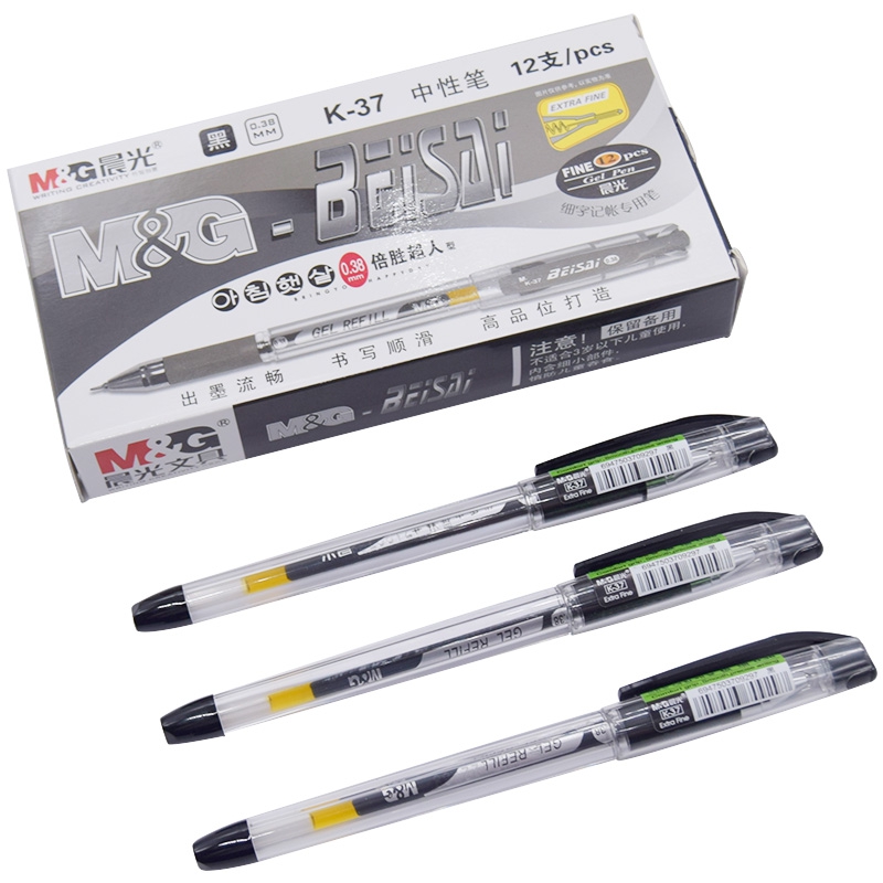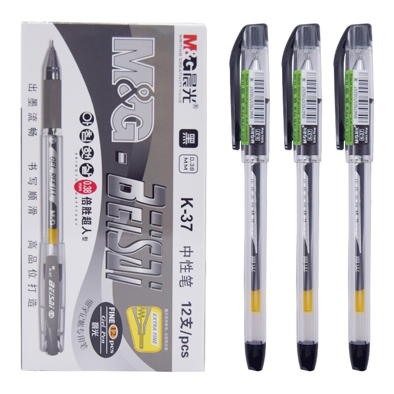 晨光 葫芦头财务中性笔极细记账水性笔签字笔水笔 12支黑色0.38mm K37 1盒适用场景:
