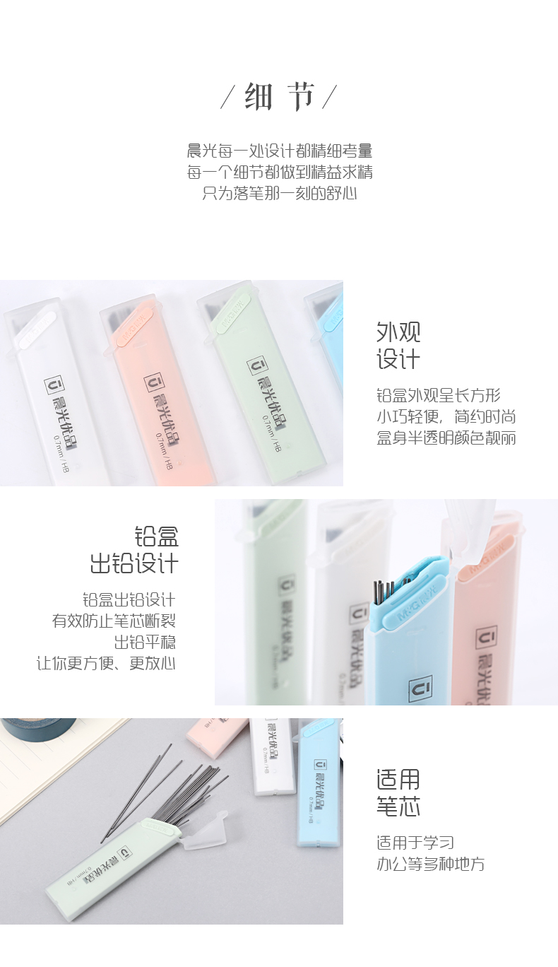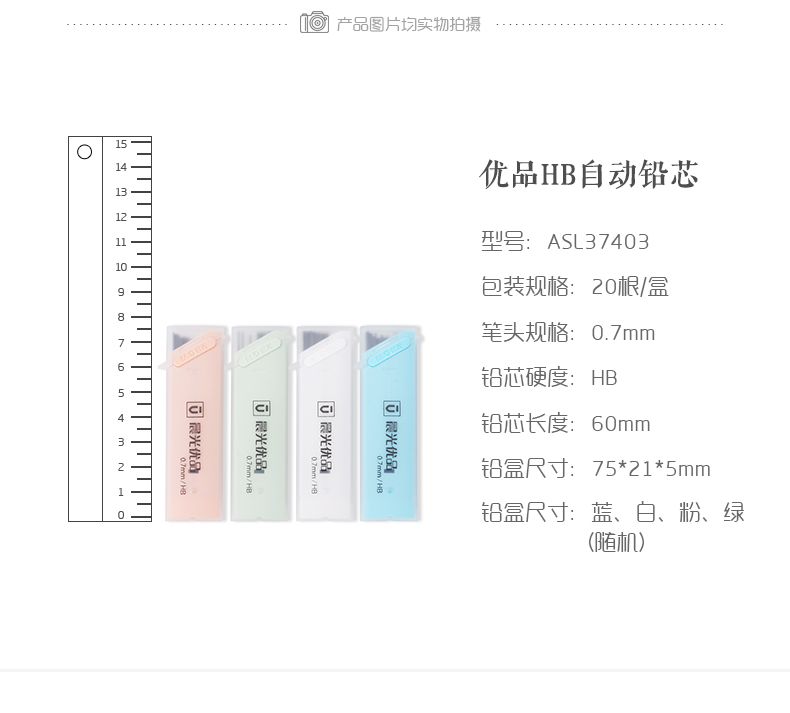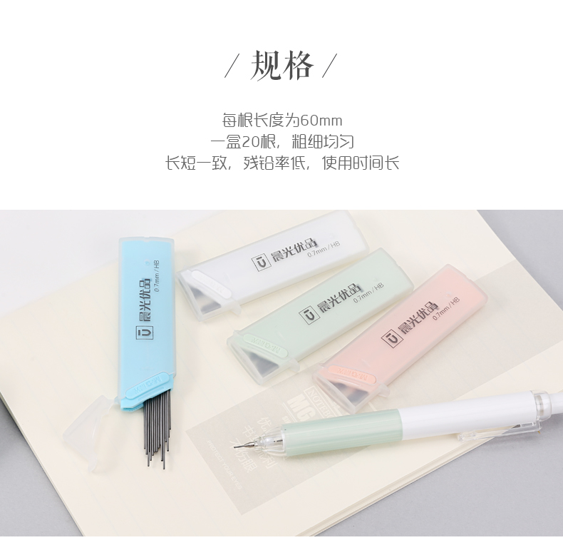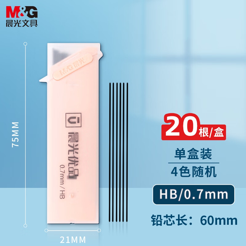 晨光(M&G)文具HB自动铅笔替芯 0.7mm树脂铅芯 学生考试绘图铅笔芯 60mm*20根/盒 单盒装颜色随机ASL37403